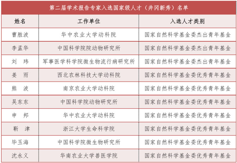 中國畜牧獸醫(yī)學(xué)會副理事長、秘書長楊漢春教授宣讀了第二屆井岡新秀名單