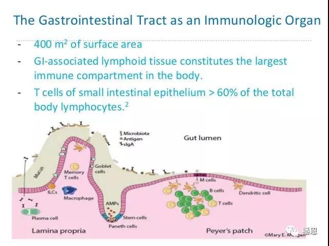 豬腸道的總面積有400m2,相當(dāng)于一個(gè)籃球場的面積,超乎想象吧!腸道是動(dòng)物最大的免疫器官和防御系統(tǒng)。腸道內(nèi)的淋巴組織構(gòu)成了機(jī)體最大的免疫隔室,小腸上皮細(xì)胞內(nèi)的T細(xì)胞可占到全身淋巴細(xì)胞總量的60%多。