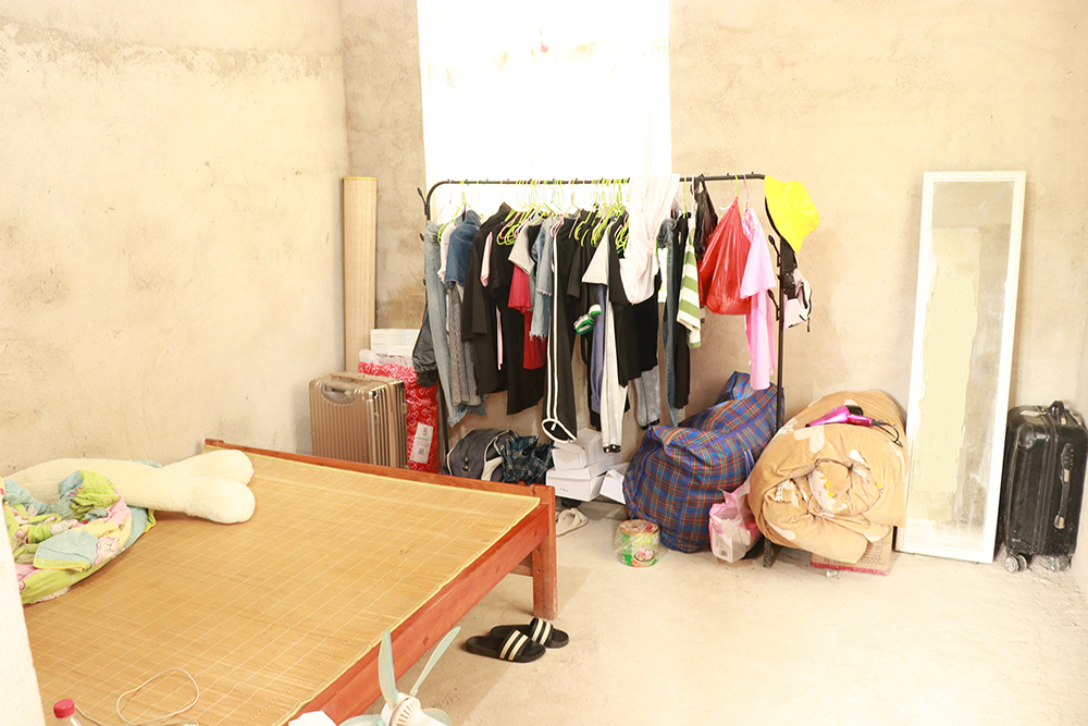 小小的房子里,剛進(jìn)到前廳,抬頭就能看到墻上掛著的貧困證明等文件。周圍沒有擺設(shè)任何的家具,凳子還是梁同學(xué)急急忙忙從房間里搬出來的。后面則是姐弟兩人的房間。梁美麗房間的東西略微比弟弟多一些。但說是多一些,其實(shí)也只有一張床,一面鏡子,兩個(gè)旅行箱,和一些掛在架子上的衣服而已。