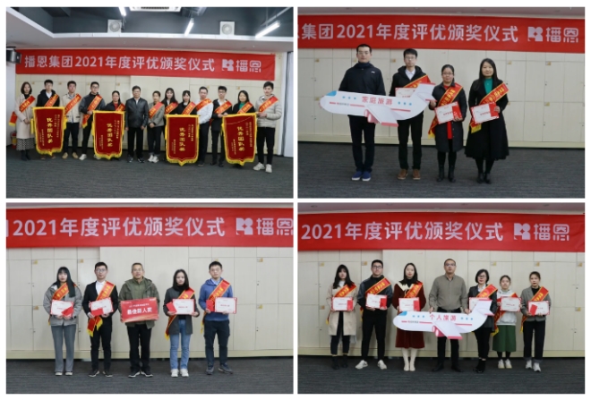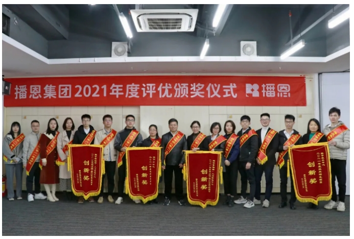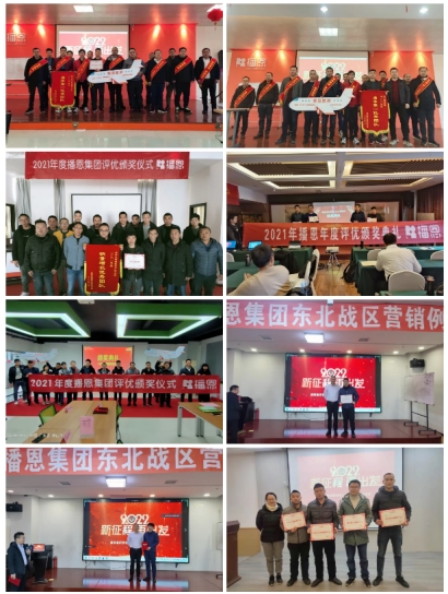 2022年2月初,為表彰播恩集團(tuán)2021年優(yōu)秀團(tuán)隊(duì)與個人,展現(xiàn)優(yōu)秀團(tuán)體精神風(fēng)貌,營造學(xué)習(xí)先進(jìn)、勇爭第一的文化氛圍,促進(jìn)企業(yè)健康高速發(fā)展,集團(tuán)特于總部、各分(子)公司及營銷戰(zhàn)區(qū)舉辦2021年度評優(yōu)頒獎典禮。