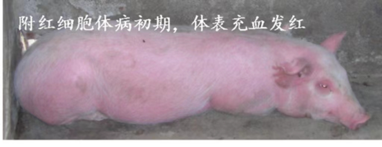 豬只感染附紅細胞體、弓形體病初期,也可伴發(fā)全身皮膚潮紅現(xiàn)象。治療:一邊肌注磺胺間甲氧嘧啶鈉,一邊肌注多西環(huán)素或長效土霉素,另外加注維生素C;全群添加多西環(huán)素和磺胺類藥及多維等進行預(yù)防。