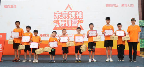 曾紹鵬總為本次夏令營活動作閉營致辭。曾總首先感謝了夏令營期間講師、助教、教官、學(xué)員、家長,及工作人員的努力和付出。他提到,播恩自成立起,就注重關(guān)愛播恩員工,并把范圍延展到了員工子女。本屆夏令營以“未來領(lǐng)袖特訓(xùn)”為主題,以“理想行動,擔(dān)當(dāng)大同”為口號,設(shè)立未來領(lǐng)袖演講授課與練習(xí)、軍事拓展訓(xùn)練、播恩文化參觀、前沿科技探索、農(nóng)耕自然體驗、牽手全國播二代六大特色模塊,帶領(lǐng)來自全國各地的50余名播二代領(lǐng)略播恩魅力。他還鼓勵播二代們擁有并傳承“穿越時空的眼光”,洞悉事物和人類發(fā)展的規(guī)律,在歷史發(fā)展的滾滾洪流中發(fā)光爭先!勇立潮頭!