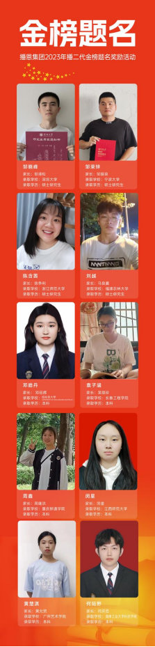 致辭結(jié)束后,就來到了最激動人心的金榜題名頒獎環(huán)節(jié)。本次活動,播恩集團(tuán)為今年考取大學(xué)的10位播二代頒發(fā)了「播二代金榜題名獎學(xué)金」。