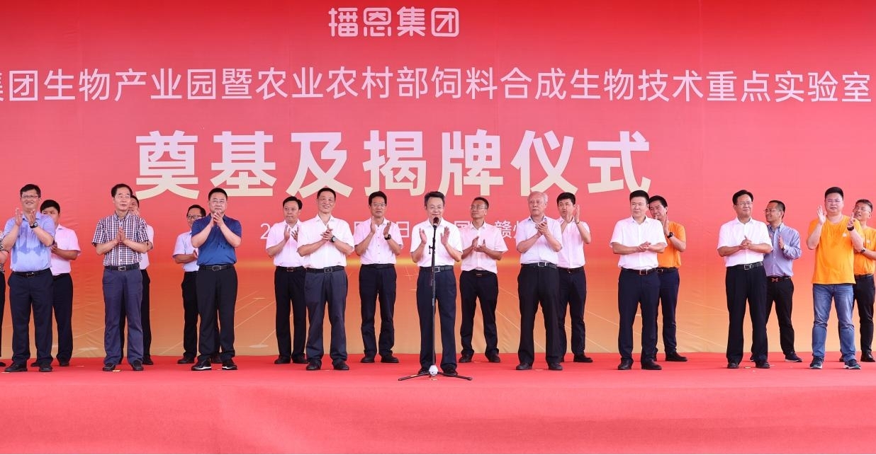 9月20日,播恩集團(tuán)生物產(chǎn)業(yè)園、農(nóng)業(yè)農(nóng)村部飼料合成生物技術(shù)重點實驗室和效能營養(yǎng)院士工作室奠基及揭牌儀式在贛州隆重舉行,標(biāo)志播恩集團(tuán)生物產(chǎn)業(yè)園“5 基地1樣板”的建設(shè)工作正式拉開帷幕,集團(tuán)的發(fā)展開啟了新篇章。