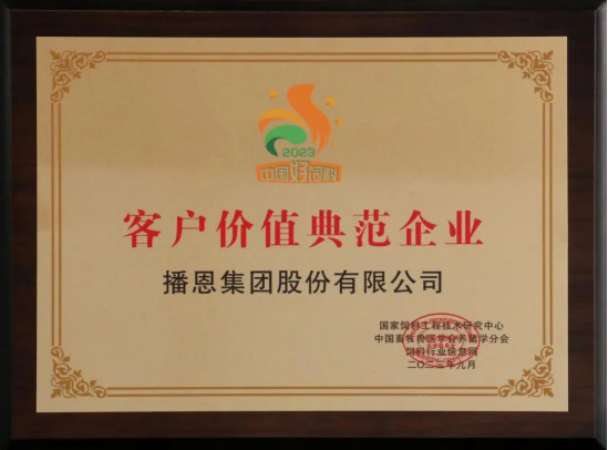播恩集團獲得由國家飼料工程技術研究中心、中國畜牧獸醫(yī)學會養(yǎng)豬學分會、飼料行業(yè)信息網(wǎng)聯(lián)合頒發(fā)的“客戶價值典范企業(yè)”榮譽
