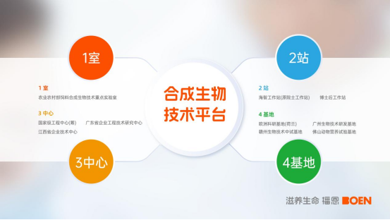 播恩集團(tuán)構(gòu)建了“1室2站3中心4基地”的技術(shù)創(chuàng)新與服務(wù)平臺(tái),即農(nóng)業(yè)農(nóng)村部飼料合成生物技術(shù)重點(diǎn)實(shí)驗(yàn)室,海智工作站(原院士工作站)、博士后工作站,國家級(jí)工程中心(籌)、廣東省企業(yè)工程技術(shù)研究中心、江西省企業(yè)技術(shù)中心,歐洲科研基地(荷蘭)、廣州生物技術(shù)研發(fā)基地、贛州生物技術(shù)中試基地、佛山動(dòng)物營養(yǎng)試驗(yàn)基地。依托這一平臺(tái),播恩成功研發(fā)出以OEN效能營養(yǎng)為代表的核心技術(shù),在動(dòng)物營養(yǎng)技術(shù)創(chuàng)新領(lǐng)域持續(xù)領(lǐng)跑。