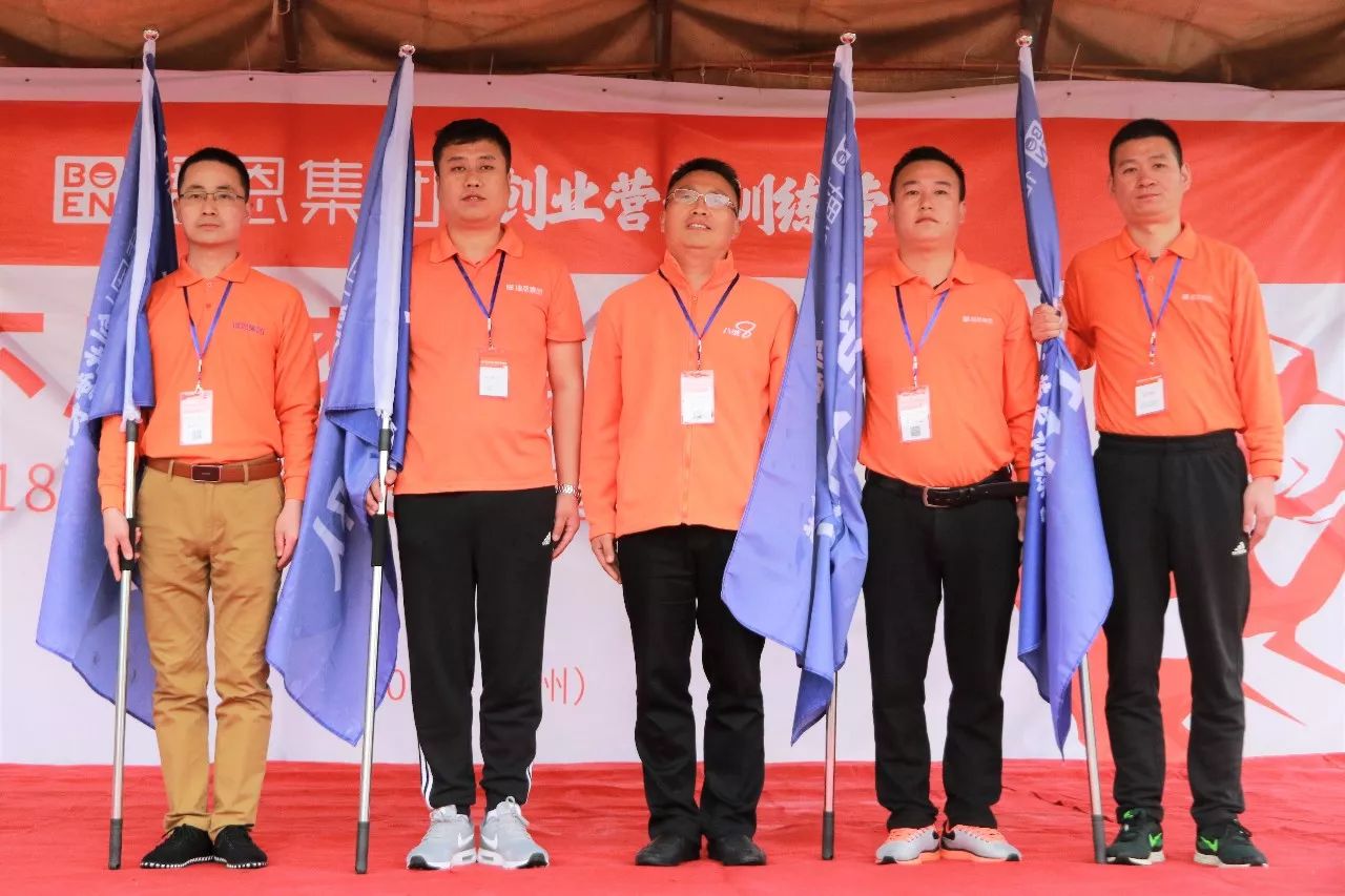 創(chuàng)業(yè)營(yíng)開(kāi)營(yíng)現(xiàn)場(chǎng),營(yíng)銷總監(jiān)曹劍波(圖中央)為中隊(duì)長(zhǎng)授中隊(duì)旗